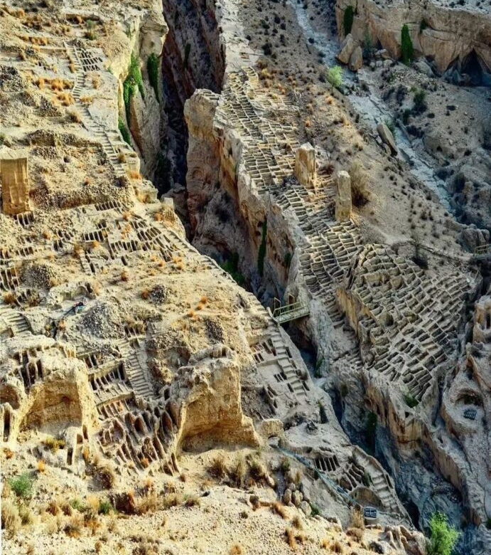 The cemetery is remarkable for its tomb structures carved directly into the rock faces of steep cliffs, creating a series of vertical chambers and niches where the deceased were laid to rest. These rock-cut tombs are carefully designed, showing an impressive understanding of both engineering and funerary architecture. The sheer cliffs provided a natural defense for the tombs, while their elevation above the sea symbolically connected the dead to the expansive waters of the Persian Gulf, emphasizing the maritime culture that dominated the lives of the people of Siraf.