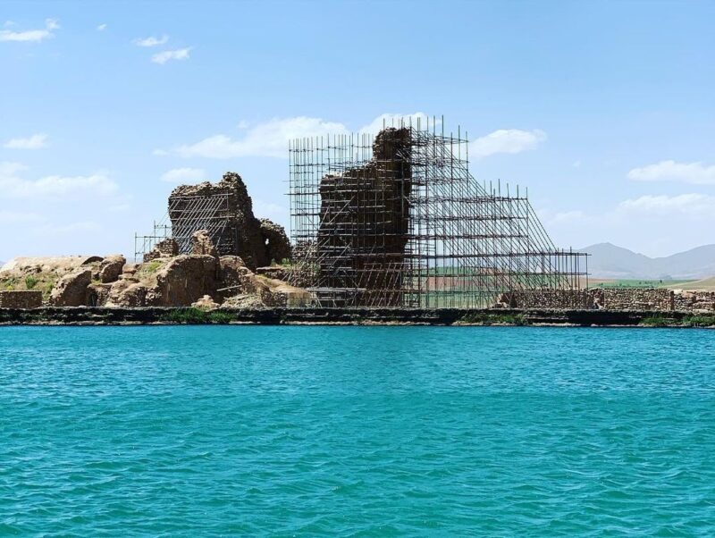 The Takht-e Soleyman is a UNESCO World Heritage archaeological site located in the volcanic region of West Azerbaijan Province, near the city of Takab. Despite being outside East Azerbaijan, it is often associated with Iranian Azerbaijan’s rich historical landscape. Takht-e Soleyman is renowned for its ancient Zoroastrian fire temple, Sassanid palace ruins, and stunning natural setting.